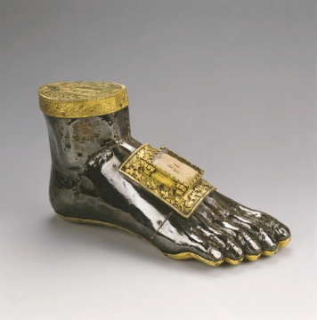 Oak base covered with silver, gilt, and a rock crystal plaque